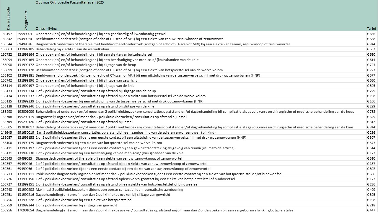 Deze tarieven zijn de zogenaamde passantentarieven en worden in rekening gebracht als uw zorgverzekeraar ons geen betalingsregeling aanbiedt.